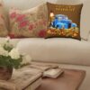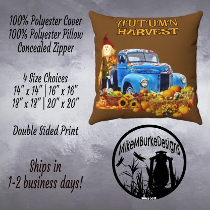 Capture the rustic charm of the Autumn Harvest with this captivating Autumn Harvest Sofa Pillow, perfect for adding a touch of farmhouse decor to your home. The design features a light blue rusty old truck surrounded by an abundance of pumpkins and sunflower heads, creating a delightful scene that exudes autumnal charm. Completing the picturesque setting are Indian corn cobs and a tall handmade scarecrow smiling from behind the truck. This colorful pillow is not only a stylish accent but also a thoughtful gift for mom or a housewarming gift for a new home. Crafted with meticulous attention to detail, it combines quality and style effortlessly. Its warm and inviting colors add a cozy touch to any space, while the rustic elements evoke a sense of nostalgia and simplicity. Elevate your home’s aesthetic and bring the essence of the Autumn Harvest indoors with this exceptional Autumn Harvest Sofa Pillow, a true statement piece that celebrates the beauty of the season.