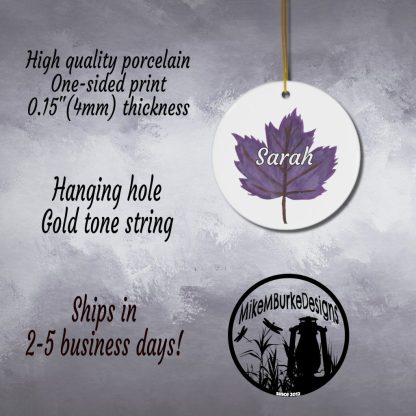 Add a touch of enchantment to your holiday season with this exquisite personalized Christmas ornament. Featuring a captivating print of a vibrant purple leaf against a pristine white background, this ornament is a true masterpiece. Its elegant design seamlessly blends into any Christmas decor, making it a must-have addition to your custom tree ornaments collection. This unique Christmas decoration not only adds a pop of color but also exudes a rustic charm that complements a variety of styles. Personalized Christmas Ornament is the ultimate and memorable gift. You can add any name and the year making this the perfect addition to your yearly traditions and memories. Whether you’re searching for the perfect Christmas gift or a stocking stuffer, this purple leaf print ornament is an ideal choice. Its alluring beauty makes it a thoughtful gift for her, including your beloved girlfriend. Make this year’s festivities truly special with this cute personalized Christmas ornament that will bring joy and elegance to your holiday celebrations.