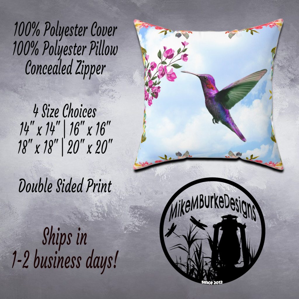 Bird Decor Unique Throw Pillow, Mother’s Day Gift For Mom, Purple Hummingbird Watercolor Pillow, Cottagecore Decor, Farmhouse Decor