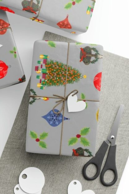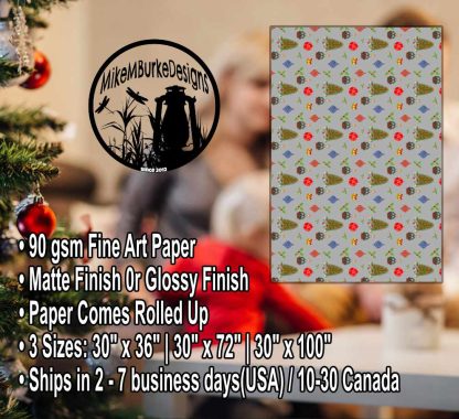 Celebrate your loved ones this season with this beautiful festive silver Christmas wrapping paper roll! Gift paper roll features tiny Christmas trees, red and blue ornaments, holly and berries and a golden Christmas bell design repeated over a dark silver background. This silver Christmas wrapping paper will have your loved one super excited to see what it’s hiding. Other colors of this gift paper roll design available in my shop. Silver Christmas wrapping paper comes in three sizes and lengths at 30″ x 36″, 30″ x 72″ and 30″ x 180″. Christmas wrapping paper arrives in a roll. Silver Gift paper is printed on 90 gsm fine art paper with your choice of a glossy or matte finish and in vibrant colors. Don’t miss the opportunity to explore my extensive collection of Christmas wrapping paper rolls, all designed to make your holiday gifting unforgettable. Start a new tradition of joy and wonder by shopping at my shop today!