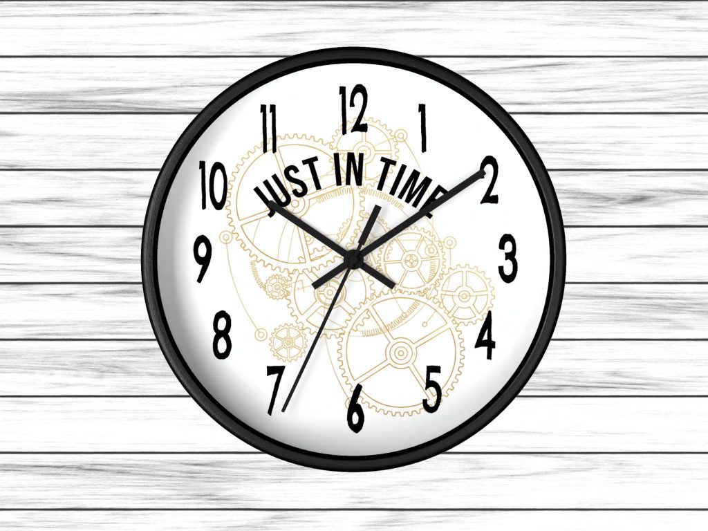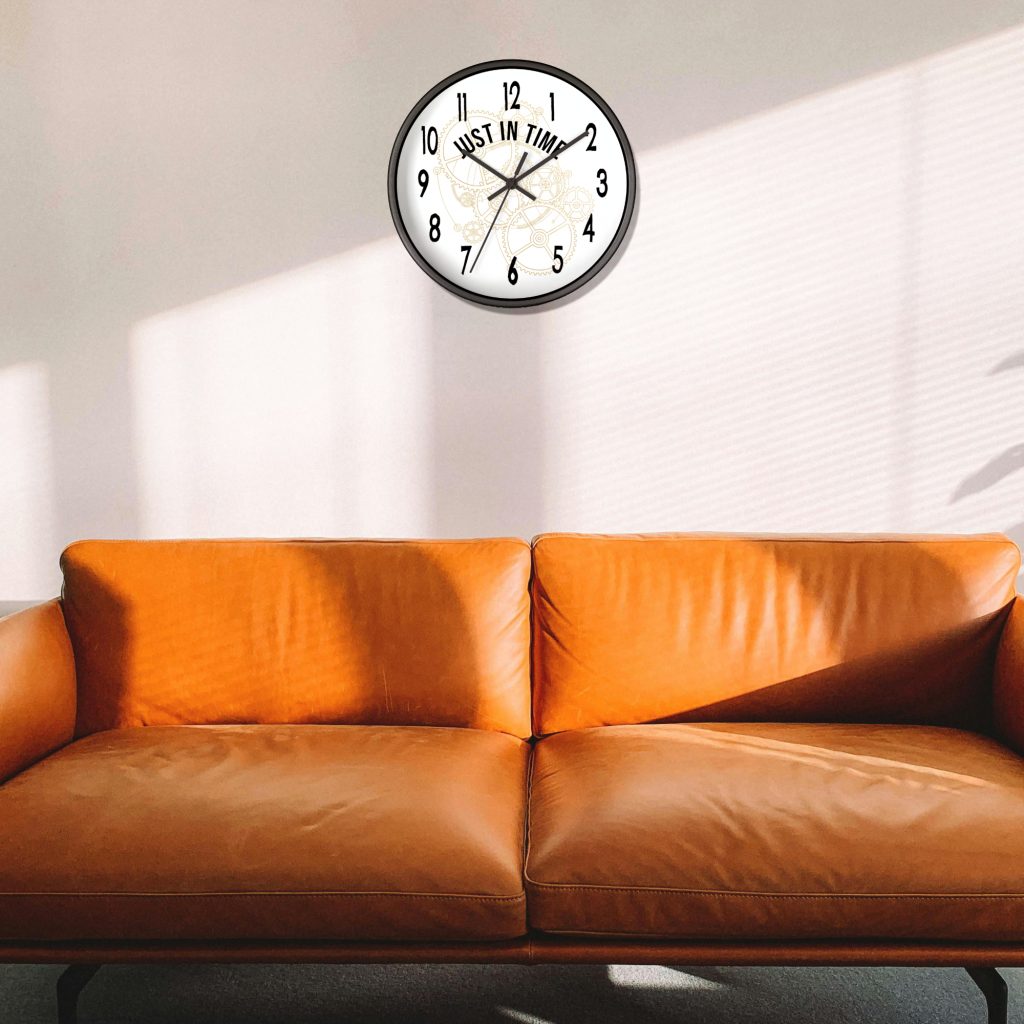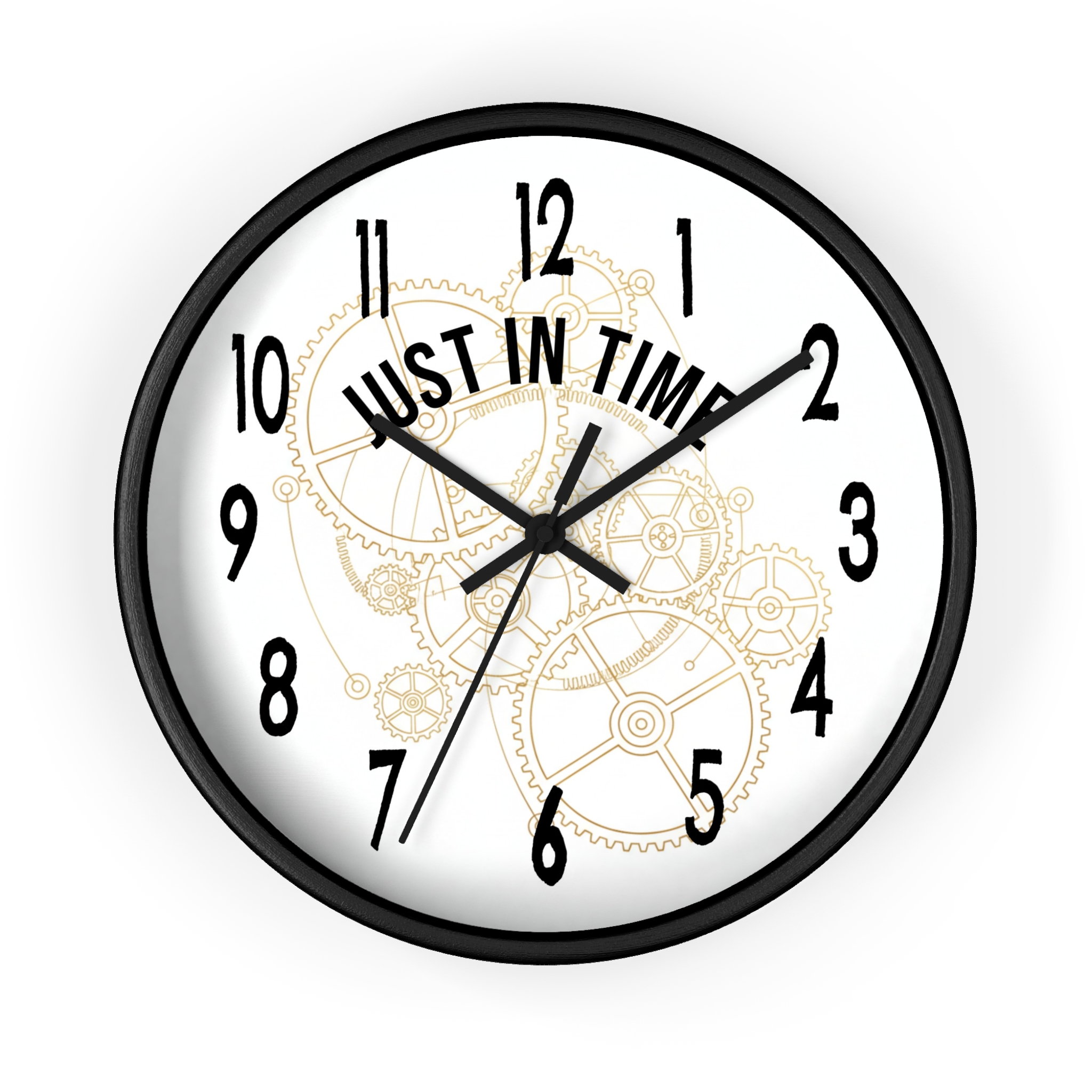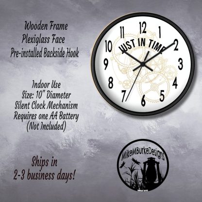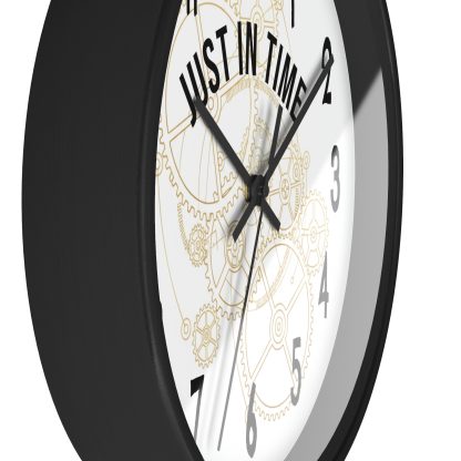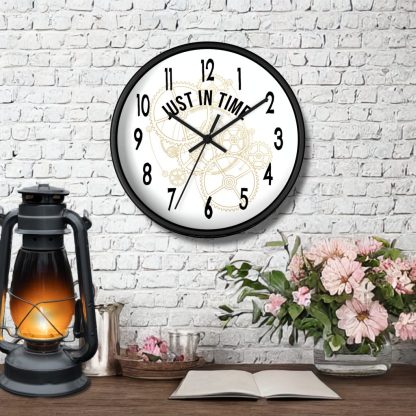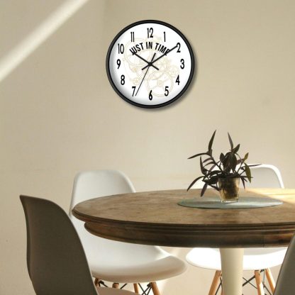 Add a playful twist to your space with this wall-mounted clock with quote “Just In Time.” Battery operated and ideal as a funny or thoughtful home gift for any room.