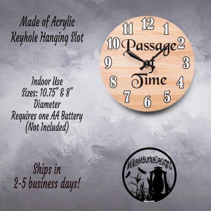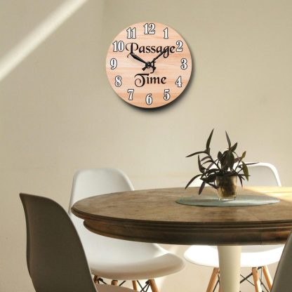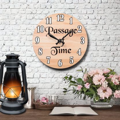Reflect on life’s rhythm with this wall-mounted clock with quote “Passage of Time.” Battery operated and designed as a meaningful home gift or time-inspired decor accent.
