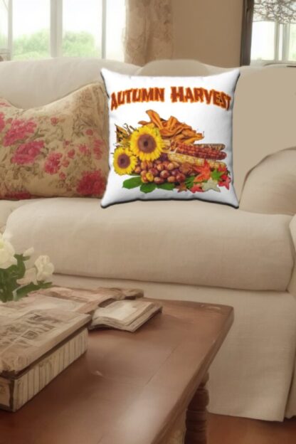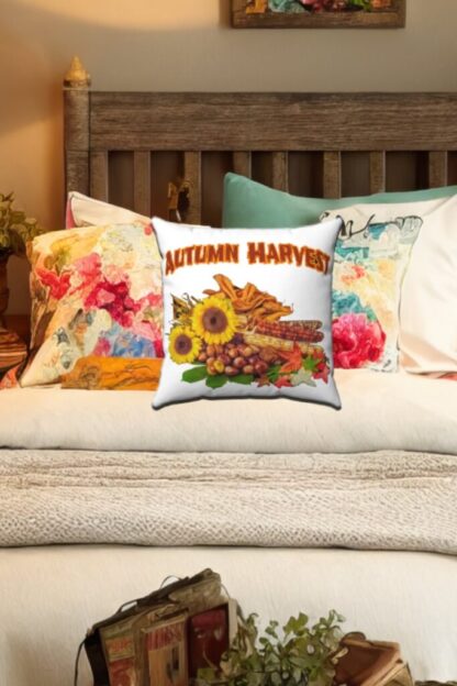 Enhance your farmhouse decor with the bountiful spirit of the Autumn Harvest by adding this exquisite Autumn Harvest Fall Pillow to your home. This decorative pillow features a captivating design that includes sunflower heads, nuts, colored fall leaves, and Indian corn cobs, creating a rich and vibrant display of autumnal elements. The text on the pillow, in fall colors, reads “Autumn Harvest,” further emphasizing the seasonal theme. Whether you’re searching for a housewarming gift for a new home or a thoughtful surprise for grandma, this pillow is the perfect choice. Crafted with meticulous attention to detail, it exudes both quality and style. Its warm and inviting colors add a cozy touch to any space, while the intricate design brings the beauty of the harvest season indoors. Experience the joy of fall and surprise your loved ones with this exceptional Autumn Harvest Fall Pillow, a true statement piece that celebrates the abundance and beauty of autumn.