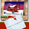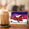 Embrace the enchantment of Christmas with this captivating Christmas card. The hand-painted image showcases a cozy house nestled amidst a winter wonderland on Christmas Eve. As the sun sets, the sky comes alive with hues of pink and blue, casting a magical glow. The ground is blanketed in a thick layer of snow, evoking a sense of serene beauty. Inside the card, a heartwarming scene unfolds, where a family gathers by a crackling fire, celebrating the joyous season together. Crafted with meticulous attention to detail, this high-quality print on matte card stock measures 4.25″ x 5.5″ when folded, exuding elegance and charm. Each set includes white envelopes, making it a complete package for gifting or adorning your winter decor. Perfect as a special gift for mom or as a cherished greeting card, this painted Christmas sunset scene captures the essence of a magical holiday. Say “Merry Christmas” with this beautiful Christmas card and spread joy to your loved ones.