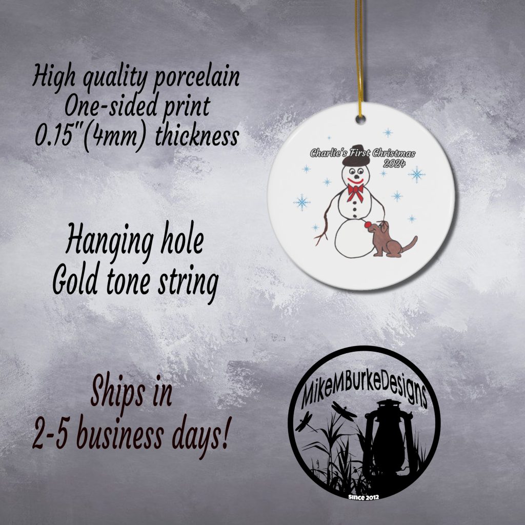 Transform your Christmas tree into a winter wonderland with this adorable personalized Christmas ornament! Our charming creation showcases an irresistible puppy with a delightful red Rudolph nose, capturing the essence of holiday cheer. The playful pup gazes up at a lovable snowman, creating a heartwarming scene that will melt hearts. Crafted with attention to detail, this custom cute ornament adds a touch of whimsy to your Christmas decor. Personalized Christmas Ornament is the ultimate and memorable gift. You can add any name and the year making this the perfect addition to your yearly traditions and memories. It’s not just an ornament; it’s a cherished memory waiting to be made. Perfect as a gift for her, a delightful mom gift, a delightful stocking stuffer, or a memorable kid’s gift, this Christmas decoration is sure to bring smiles and create lasting memories. Don’t miss out on the chance to make someone’s Christmas extra special with this charming personalized Christmas ornament.