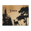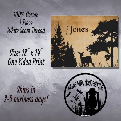 Transform your dining table into a cozy country log cabin retreat with our exquisite Country Log Cabin custom name Forest Rustic Placemat. Handcrafted with love and attention to detail, this placemat is the perfect gift for him, husband, father, her, mom, or friend. Add your family name, your name, or a loved one with the custom name text option, making this personalized placemat truly a unique piece for the home. This custom placemat is also the perfect gift for mom or dad and makes a great gift for anyone who loves camping trips. It’s also perfect for picnic tables! The placemat features a captivating cabin print, adorned with a mesmerizing deer in forest silhouette, creating a nature scene that will transport you to the tranquility of the wilderness. Our high-quality printed design captures the rustic beauty of the great outdoors, adding a touch of warmth and elegance to any mealtime. Whether you’re hosting a family gathering or enjoying a romantic dinner for two, this placemat seamlessly blends with your farmhouse decor, creating an inviting ambiance that will impress your guests. Elevate your dining experience with our Cabin Print custom name Forest Rustic Placemat and bring the rugged charm of the wilderness into your home today!