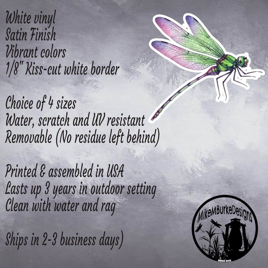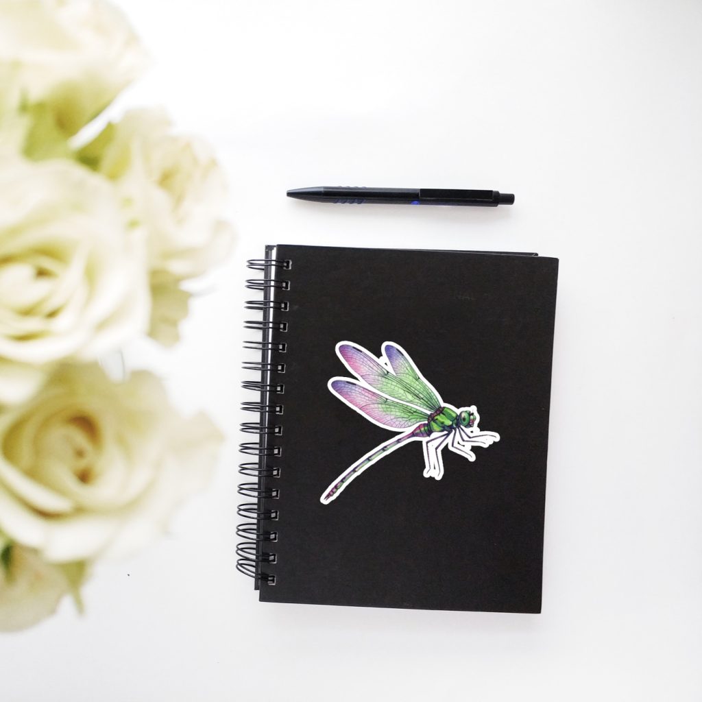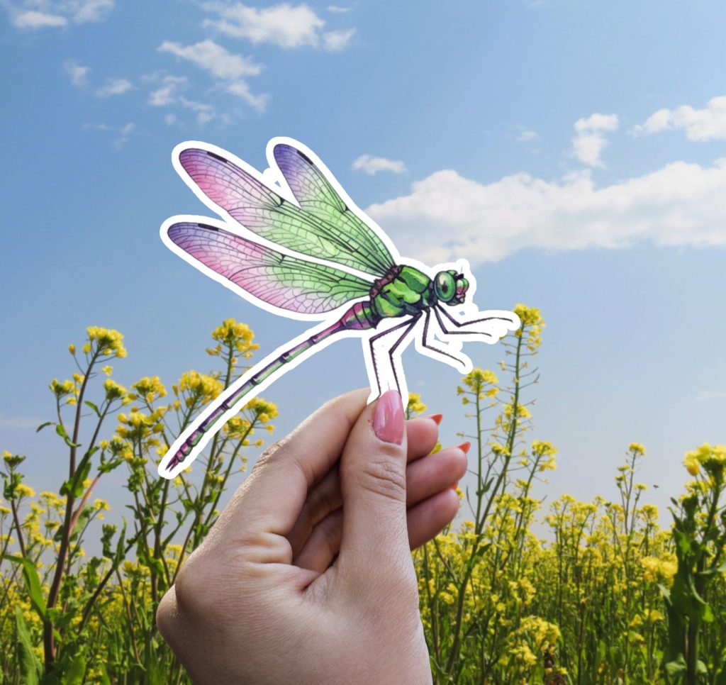 This dragonfly decal features vibrant colors, a satin finish, and kiss-cut edges with white borders. Made from waterproof vinyl, it’s a durable and nature-inspired gift for her—ideal for decorating laptops, journals, planners, or water bottles.