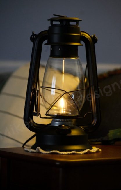 Spice up your home, office, or workplace with this beautiful rustic and nostalgic handmade farmhouse flat black Electric Lantern Table Lamp. This stunning 12″ table lamp is a real kerosene lantern that has been converted to electric. With your choice of bulb (see below for details) you can create a warm and inviting ambiance that will be unlike any lantern lamp you could find anywhere but here! The electric hurricane lantern table lamps I offer here are all real kerosene lanterns that I personally convert to electric. The bulb can be changed just like any table lamp allowing you to use your own as long as it is an E12 socket based bulb. This rustic lantern lamp comes with a ON/OFF switch on the cord and has a flexible light bulb socket built in. This means that the socket moves with the glass globe cage allowing you to install taller bulbs. Perfect lamp for that log cabin or rustic farmhouse decor style. The flat black electric hurricane lantern lamp is my most popular item here and they do not last long so be sure to grab yours before they sell out and make this yours today!