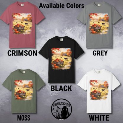 This farm art vintage style t-shirt features a rustic fall country scene printed on soft, pre-shrunk cotton. With a relaxed fit and comfort colors fabric, it’s a cozy nature-inspired gift for women who love the countryside.