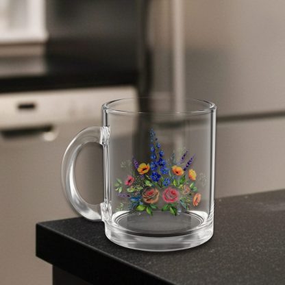 This 10 oz floral glass mug features a clear body, durable heat-resistant design, and a comfy c-shaped handle—ideal as a charming gift for her or everyday tea moments.