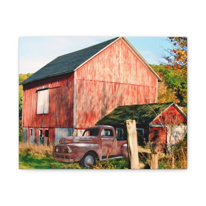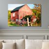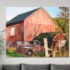 Antique Truck Canvas Wall Art, New England Rustic Red Barn, Country Farmhouse Decor, Fall Landscape Canvas Print