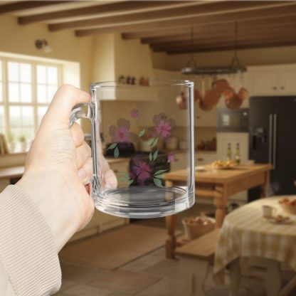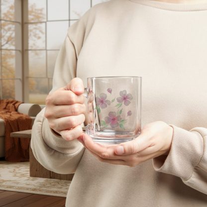 This 10 oz pastel floral nature glass mug features a clear, heat-resistant body and a comfy c-shaped handle—ideal for birthdays, tea lovers, or botanical kitchen decor.