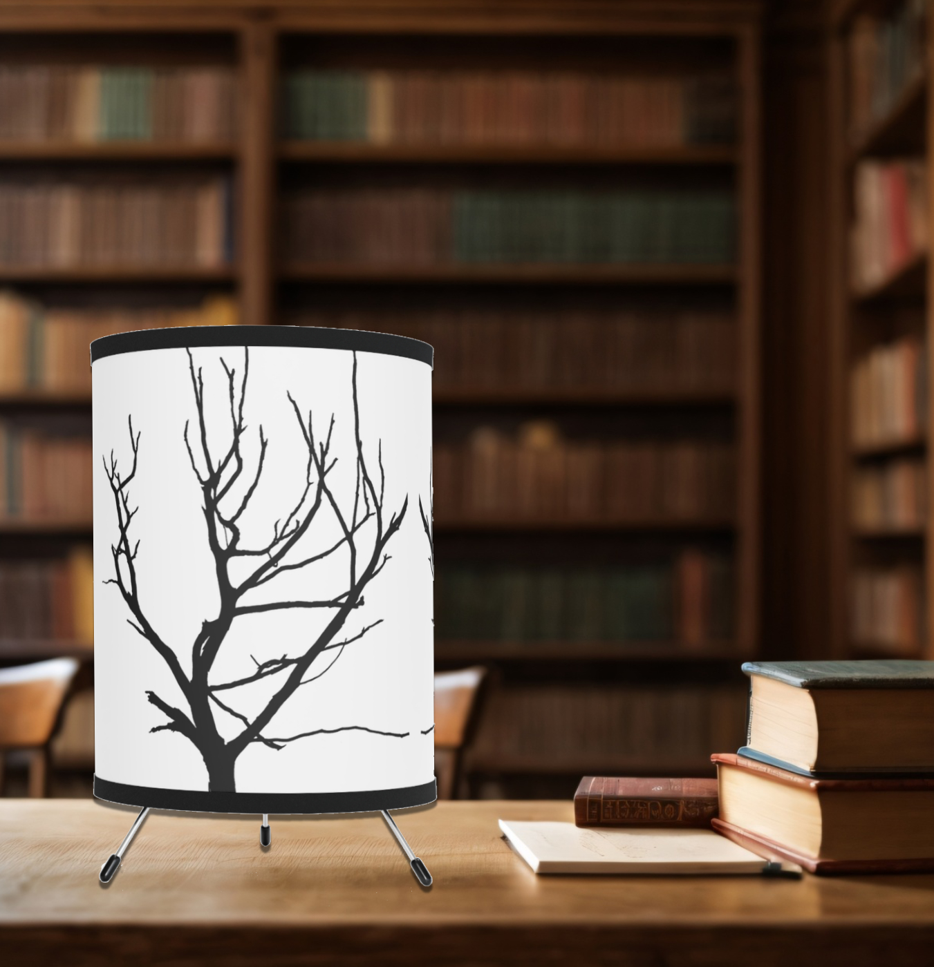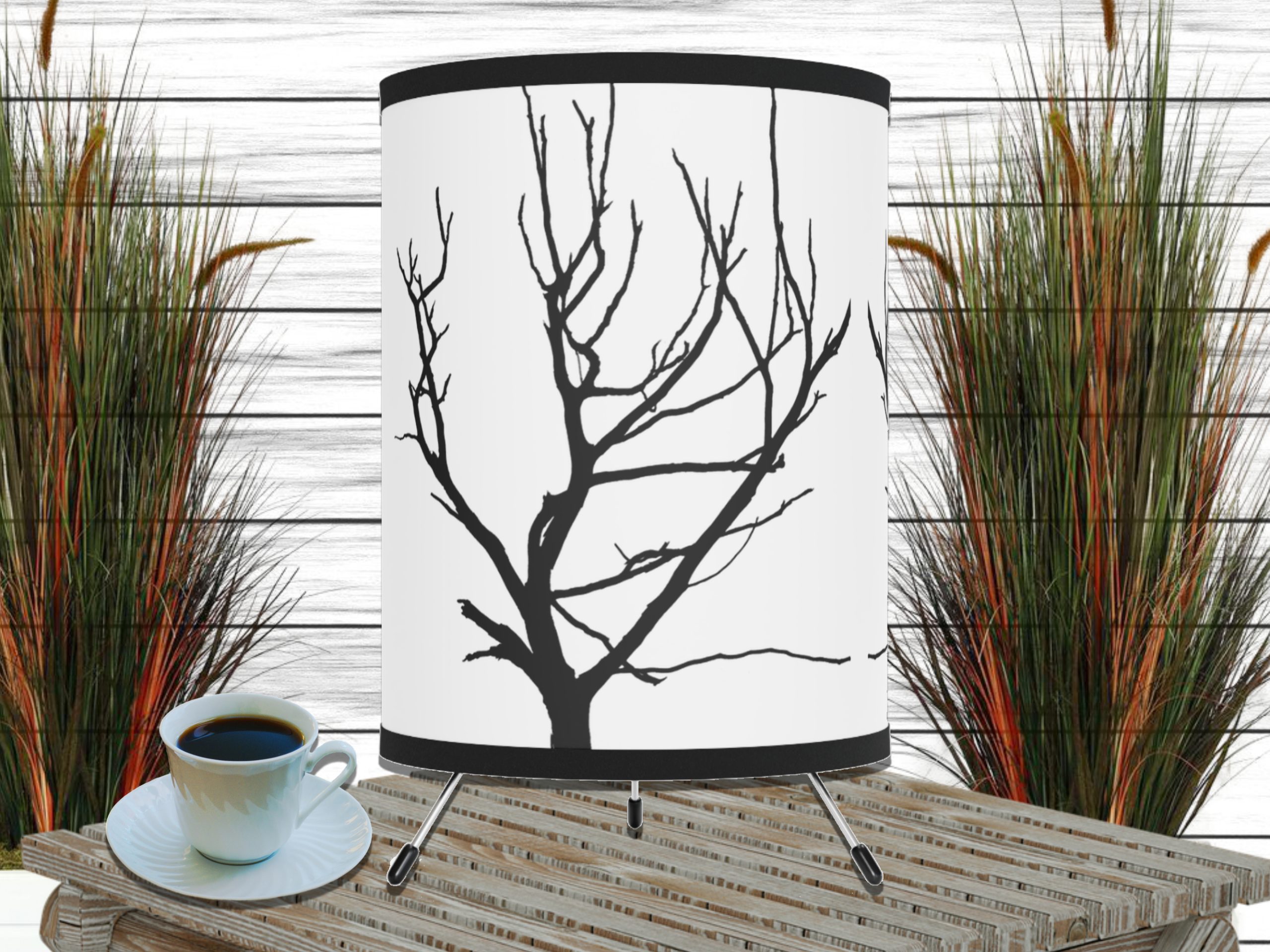 Elevate your decor with the timeless charm of our rustic nature tripod Lamp. This exquisite table lamp features a sturdy steel base and a lampshade adorned with a striking silhouette of a tree without its leaves. The intricate design adds a touch of rustic elegance to any space, making it a perfect addition to log cabin decor, farmhouse decor settings, or rustic-themed interiors for cozy home lighting. Table lamp uses standard size light bulbs (not included) and requires 13w compact fluorescent, 60w incandescent or LED equivalent. The print on the lamp shade is printed in high resolution for better detail and color. Crafted with meticulous attention to detail, this tripod lamp effortlessly complements country-inspired decor. Whether you’re looking for a gift for your wife or a special gift for her for any occasion, this rustic Lamp is a thoughtful choice. Create a warm and inviting atmosphere, allowing the gentle glow to envelop the room with its enchanting ambiance. Embrace the timeless allure of steel and enhance your home with this exceptional nature tree tripod lamp that will surely bring a smile to her face.