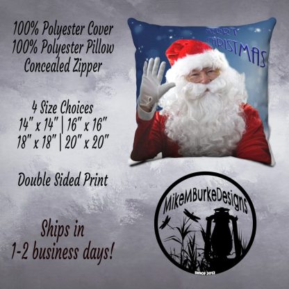 Get into the holiday spirit with this delightful Christmas Santa Pillow, perfect for adding a touch of festive cheer to your home. Colorful and festive Santa Pillow features the big man in red waving. His pure white beard cascades over his red jacket. Above it’s says “Merry Christmas.” Whether you’re looking for a housewarming gift for a new home or a unique throw pillow to brighten up your space, this pillow is sure to bring joy and laughter. The design features a real Santa waving hello, creating a fun and whimsical vibe. Surprise your grandma with this delightful Christmas gift, showcasing your love and thoughtfulness. Crafted with attention to detail, this pillow combines comfort and style seamlessly. Its vibrant colors and festive motif make it a standout piece, capturing the magic of Christmas. Elevate your home’s aesthetic and experience the joy of gifting or treating yourself to this charming Christmas Santa Pillow. Let Santa’s merry wave spread happiness and warmth throughout your home this holiday season.