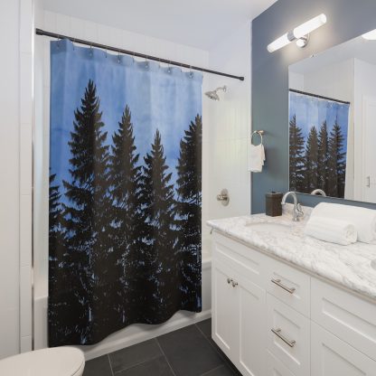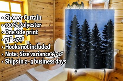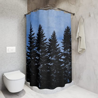 Transform your bathroom into a serene escape with our extraordinary Rustic Blue Shower Curtain with a pine tree forest design. Embrace the timeless allure of Farmhouse Decor and Log Cabin Decor, bringing rustic charm to your home. This captivating piece doubles as a remarkable Gift For The Home, making it a perfect housewarming gift. Picture a tranquil pine tree forest against a soft watercolor blue sky, beautifully depicted on this shower curtain. Meticulously crafted, it seamlessly blends rustic elegance with modern functionality. The durable fabric ensures long-lasting quality, while the easy-to-clean surface guarantees effortless maintenance. Elevate your space with this exceptional Rustic Cabin Decor that adds a touch of natural beauty and tranquility to your daily routine. Whether you’re treating yourself or someone special, this unique shower curtain is the perfect addition to any bathroom. Celebrate new beginnings and create a peaceful ambiance with this exclusive Rustic Blue Shower Curtain that will leave a lasting impression on your home.