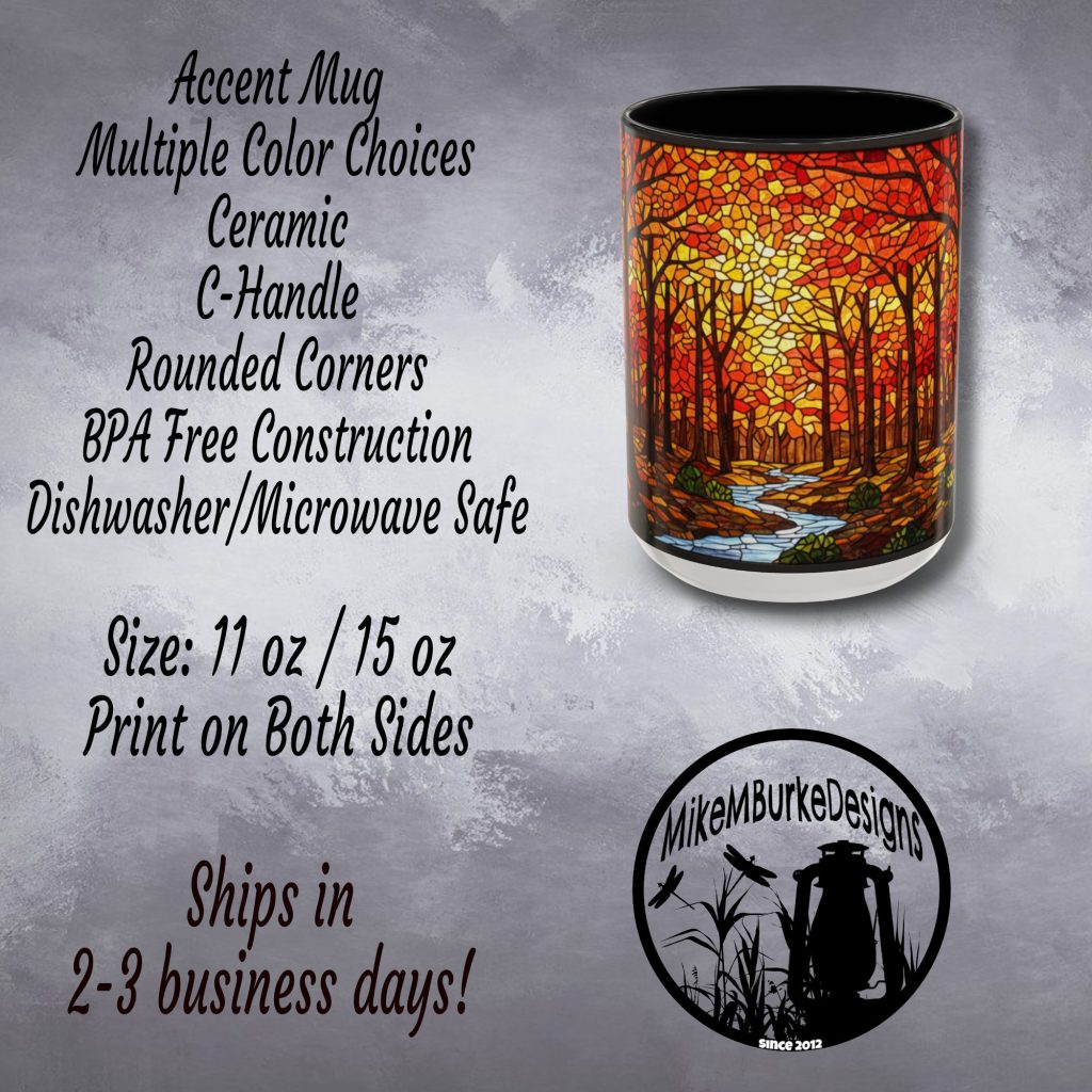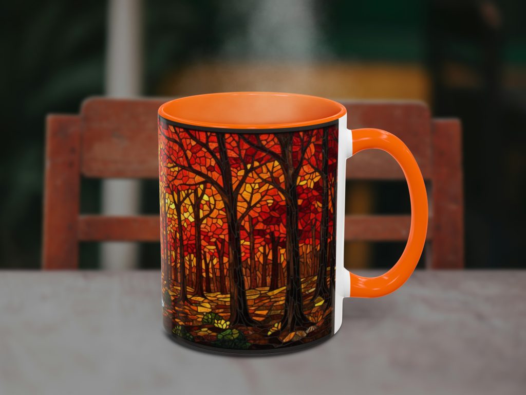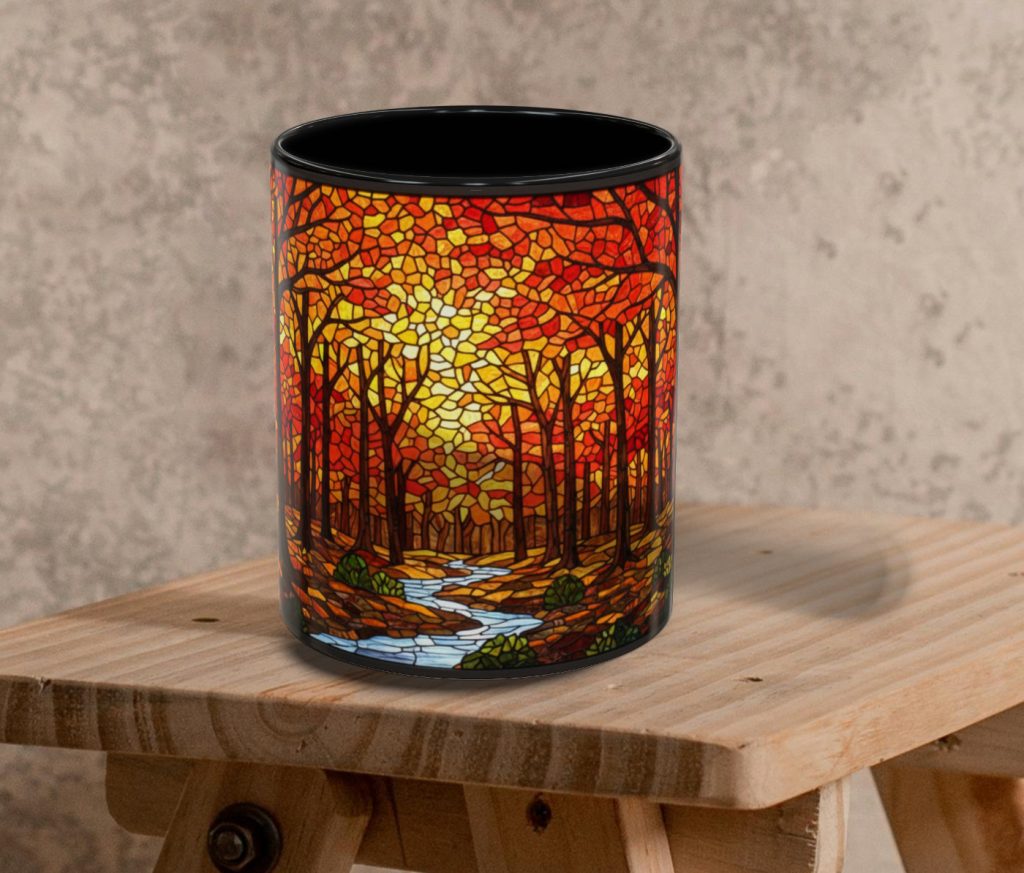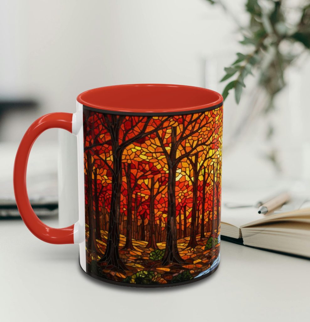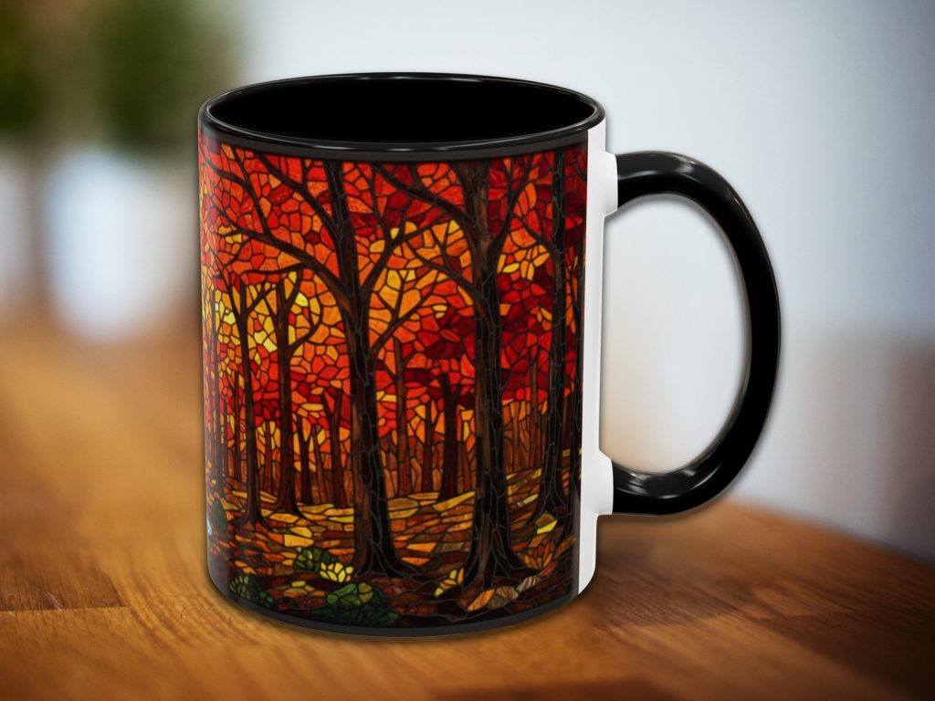 This ceramic mug features a stained glass woodland mug design, ideal for nature lovers and outdoor enthusiasts. Microwave and dishwasher safe for daily use.