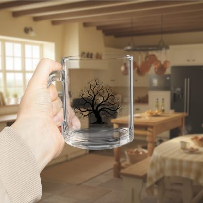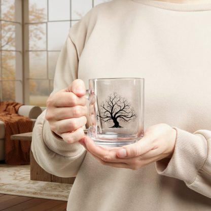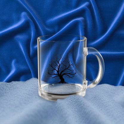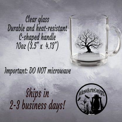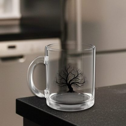 This 10 oz tree nature glass mug features a clear, heat-resistant body and a c-shaped handle—ideal for nature lovers who enjoy tea, coffee, or forest-inspired kitchen decor.