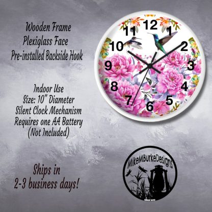 Transform your space into a captivating oasis with our exquisite Hummingbirds Floral Decor Farmhouse Clock. This enchanting timepiece effortlessly blends the charm of farmhouse aesthetics with the elegance of nature-inspired beauty.