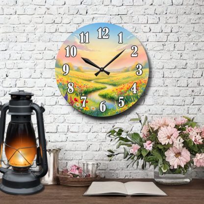 Bring the calm of nature indoors with this wall-mounted Watercolor Landscape Clock. Battery operated and ideal as a thoughtful home gift or artistic accent for any room.